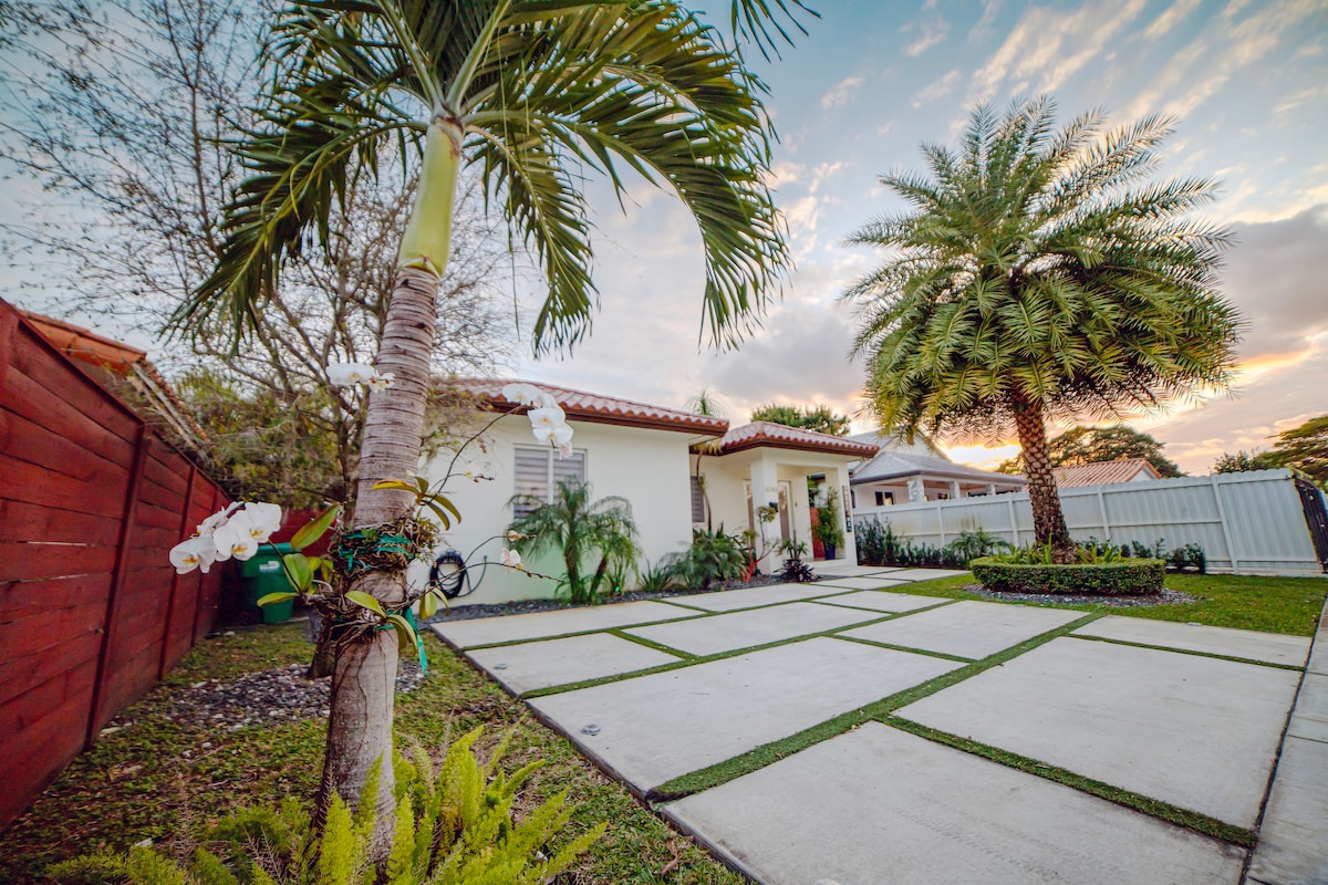 Relaxa't i bronzeja't al costat de la piscina i la banyera d'hidromassatge, fes una barbacoa amb la família i els amics. Aquesta casa cèntrica i de luxe de 3 llits i 3 banys té capacitat per a 10 persones còmodament. Es va remodelar completament i inclou una cuina totalment equipada, una sala d'estar i una zona de menjador interior i exterior. A 3-15 minuts en cotxe: Brickell, Downtown, Key Biscayne, South Beach, Airport (MIA), Little Havana, Wynwood, Design District, Coconut Grove.