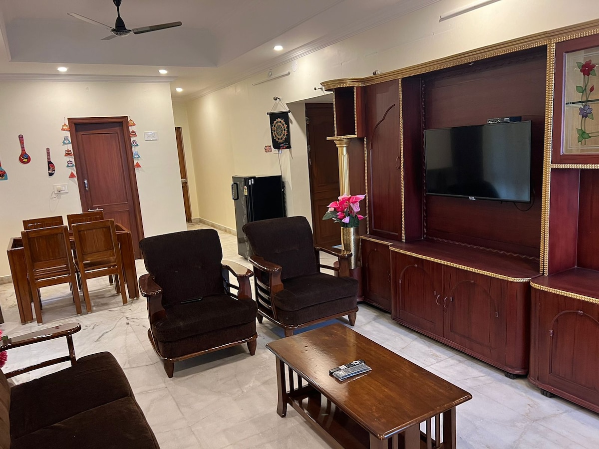 * A 3 minuts a peu de la platja de RK * Et donem la benvinguda al teu refugi exclusiu per gaudir d'una escapada de luxe a peu de platja al cor de Visakhapatnam. Situat just davant de l'emblemàtica RK Beach i al costat del famós hotel Novotel, aquest impressionant pis de 3 llits i 3 banys promet una experiència costanera inoblidable. Aquest pis totalment moblat de 2700 sft ofereix un espai d'estar espaiós i dissenyat amb bon gust, per la qual cosa és perfecte per a famílies, parelles o grups d'amics que busquen un refugi notable al costat del mar.