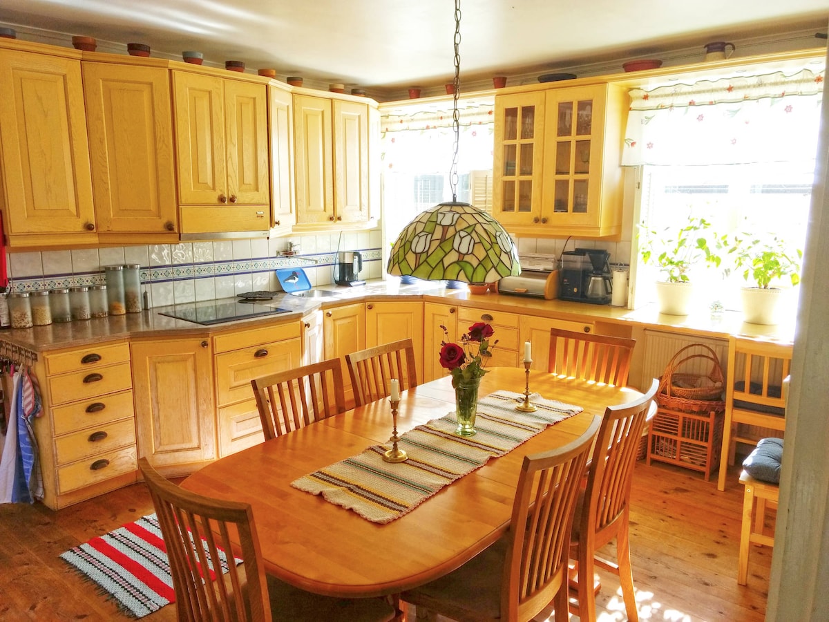Gran i espaiosa vil·la d'un sol nivell de 180 metres quadrats. Dormitori amb llit doble i dues habitacions. Dues sales d'estar amb TV. Alts estàndards en totes les habitacions, cuina amb totes les modernitats. Casa rural a la granja amb bany i dutxa adequada per a dues persones. Gran parcel·la situada en un entorn rural, a uns 4 km de la bonica platja de sorra, Åminne. A 15 km de la comunitat amb botigues. Apte per a famílies grans o si sou dues famílies. Si tens al·lèrgies, tenim un gat i un gos. A Åminne hi ha un restaurant i un km a dos restaurants més.