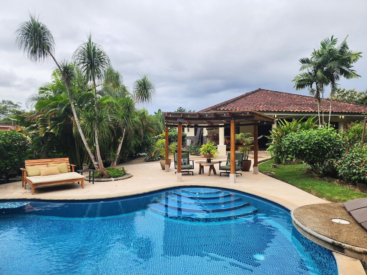 Airbnb tropical de "concepte obert", amb piscina privada i plataforma de ioga/meditació, situat en un poble típic, a 20 minuts de l'enrenou de la ciutat de Panamà, Panamà, Amèrica Central. Aquesta moderna casa tropical contemporània està situada als turons de Càceres, en una finca de 5 acres plena d'arbres tropicals, aus i un paratge molt cuidat. Barbacoa de gas i carbó a l'aire lliure al pati del darrere amb jardí d'herbes vertical per gaudir d'un refugi de relaxació perfecte.