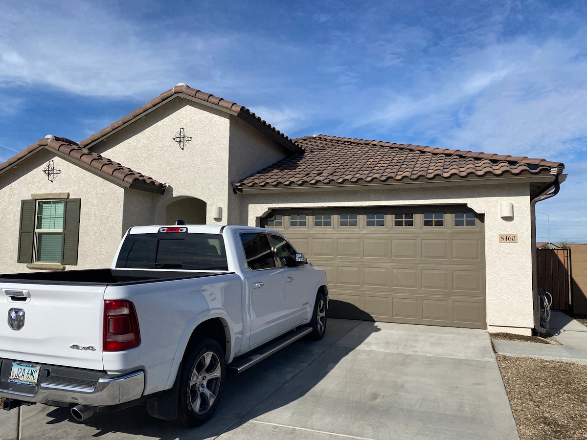 Et donem la benvinguda a casa amb la teva pròpia escapada de luxe. Perfecte per a famílies i grups de famílies. Aquesta casa gairebé nova de 5 dormitoris i 3 banys disposa de 2 master suites. Cuina extragrande amb electrodomèstics d'acer inoxidable nous. Habitació familiar extragrande amb televisor de 70"i espai per a jocs. Situat al barri enfront del parc. Proximitat a llocs fantàstics per fer senderisme, camps de golf premiats i instal·lacions esportives professionals, com ara els entrenaments de primavera i la NFL. Fes d'aquest espaiós allotjament la teva base per a qualsevol aventura d'Arizona.