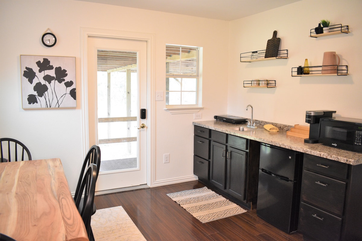 La Puerta Pink Casita et convida a venir a assaborir la tranquil·litat i la bellesa del camp en una casa totalment moblada de 2 llits i 2 banys. Passa temps recordant, tornant a connectar i revitalitzar amb amics, familiars o gossos al costat del foc, fent s 'mores. Necessites wifi? Tenim wifi Starlink per consultar el correu electrònic o Netflix. Gaudeix de 10 hectàrees de terra mentre estàs assegut al pati del darrere. La calor de l'estiu no va assecar l'estany i la lubina i el bagre estan prosperant! Porta bastons de pesca i gaudeix del temps al costat de l'estany.