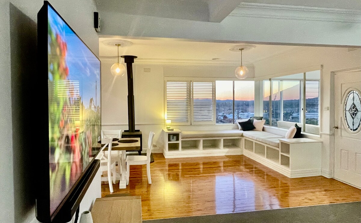 🏡 Molt cèntric: a 1 minut a peu del carrer principal 🐶 S'admeten animals de companyia 🌼 Patio ampli i segur amb barbacoa i garatge gran ☕️ Cafetera i a prop de cafeteries de la zona 🔥 Llar de foc i rajoles calefactades Aquest encantador allotjament de 3 dormitoris està situat al cor de Wagga. La propietat s'ha renovat fa poc i està moblada amb estil. Oferim roba de llit i tovalloles de luxe, wifi d'alta velocitat gratuït, dues televisions intel·ligents amb Netflix, un garatge segur i un pati gran. Als 3 dormitoris hi ha un llit «king size», un llit «queen size» i un llit de matrimoni.