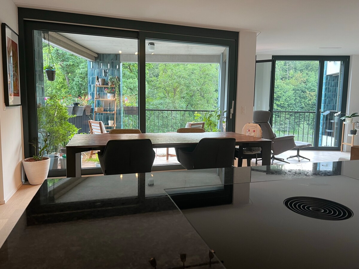 Nou apartament ampli i tranquil (115 m2), amb una vista fantàstica sobre el riu i cap als turons verds. Els hostes tenen accés a una plaça d'aparcament privada al garatge subterrani amb caixa de paret per carregar el cotxe, una cuina d'alta gamma amb forn, planxa de vapor, rentaplats, etc., rentadora/assecadora privada, dos banys (dutxa/lavabo, banyera/lavabo), dos dormitoris i un espai d'oficina còmode. El centre de la ciutat de Zuric està a només 10 minuts amb transport públic i també es pot arribar en bicicleta. Perfecte per a estades llargues i famílies