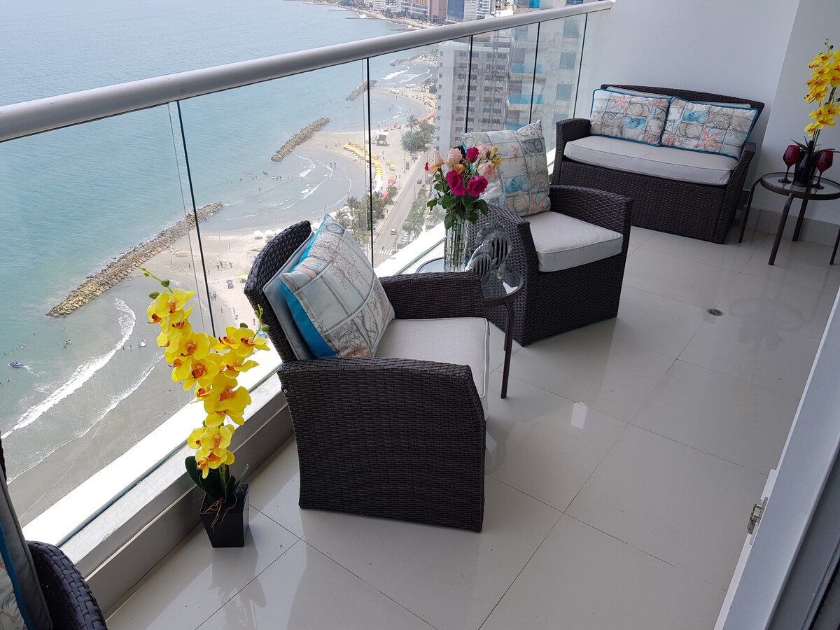 Pis molt bonic a la planta 30 amb vistes al mar, a Bocogrande i al barri històric. La piscina superior ofereix una vista fantàstica de tot Cartagena i la platja també està just al davant de la casa. A les proximitats hi ha diversos restaurants, bars, casinos, bancs i caixers automàtics. El pis és ideal per a entre 4 i 6 persones, incloent-hi un aparcament a l'edifici així com WiFi.