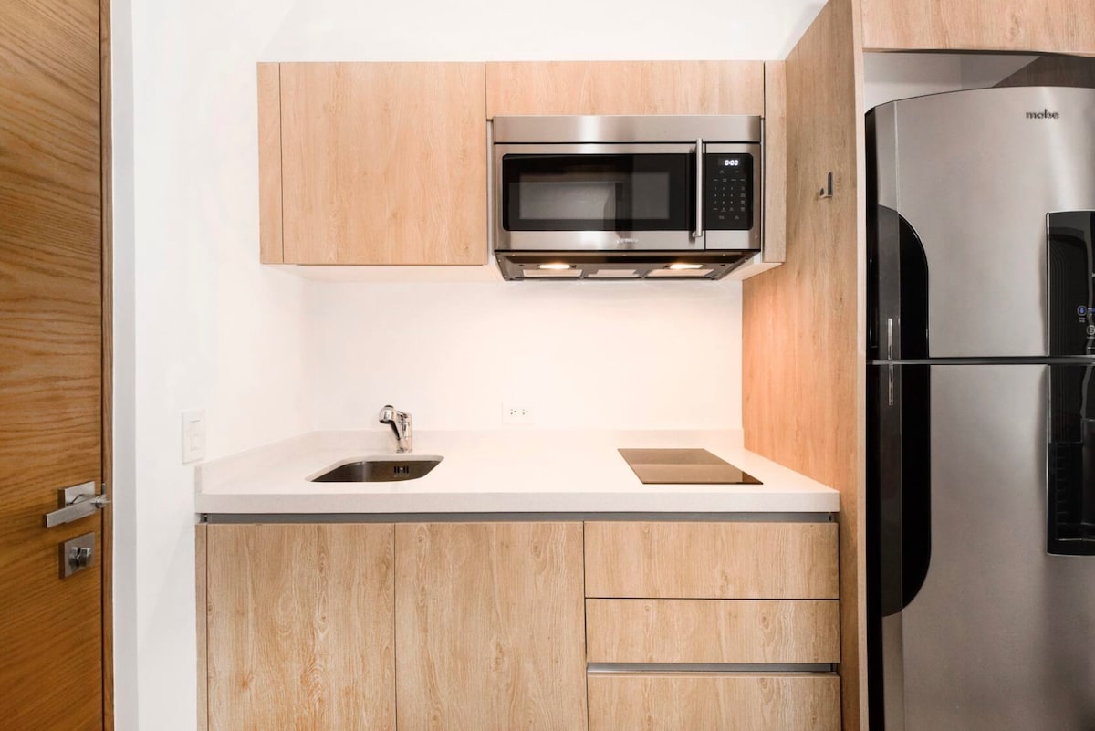 Gaudeix d'una experiència elegant en aquest allotjament al cor de Playa del Carmen, 5a Av. trobaràs tot el que necessites, ja que és la zona més turística, té els millors restaurants, centres comercials, La Quinta Alegría, carrer corazón i molt més .. tot caminant, La platja està a només uns 300 metres L'accés a l'edifici és a través d'una àmplia i bonica recepció amb wifi i aire condicionat, guàrdia les 24 hores, porta elèctrica amb clau per accedir a l'ascensor.