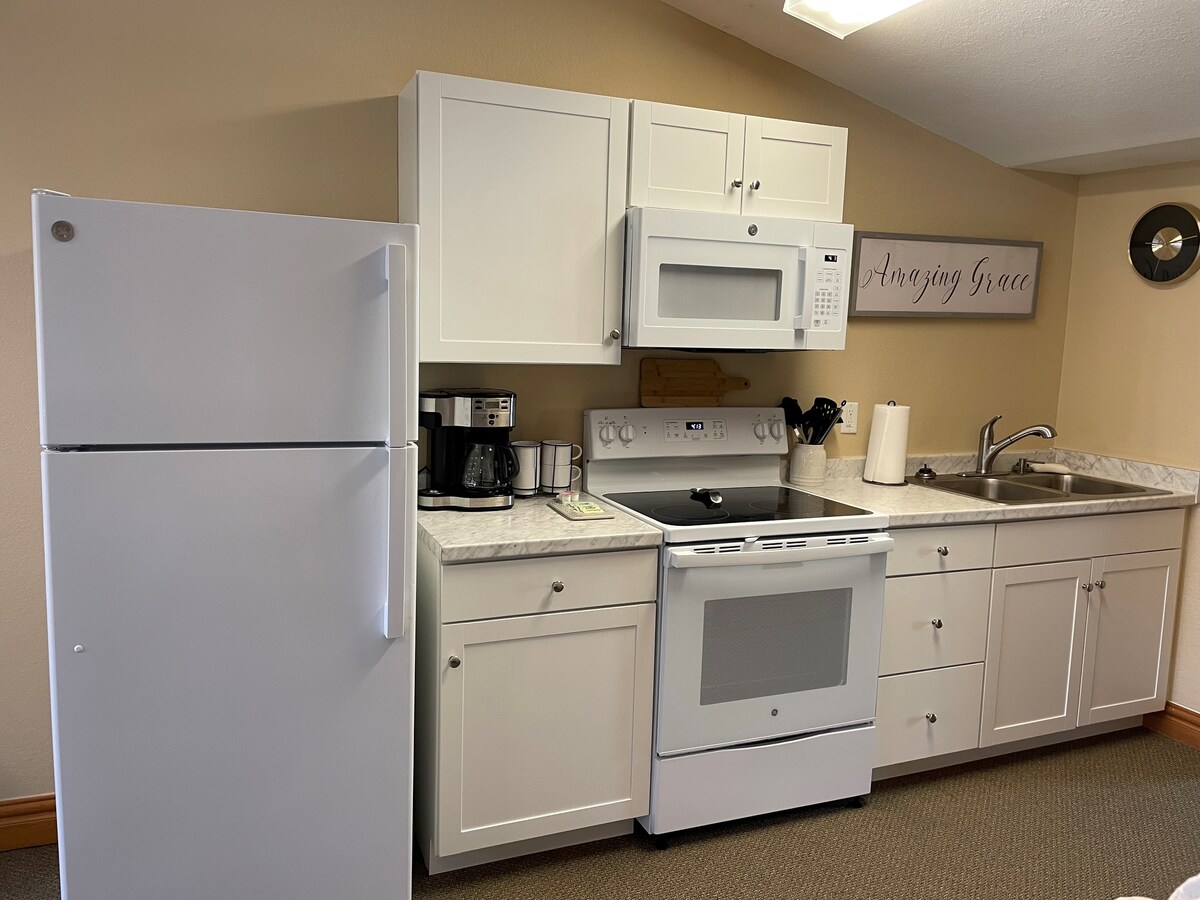Situada a les dunes boscoses de l'illa Roanoke, Crews Cottage està unida a la casa principal dels propietaris a través d'una passarel·la i un porxo protegit. Sense passos! (Consulta la secció Accessibilitat). Aproximadament 1000 peus quadrats de mida total, disposa d'un dormitori privat gran (llit queen) amb bany/dutxa. La gran sala té un sofà llit extraïble (ple) i un llit de seient (individual). La cuina petita disposa de nevera de mida completa, forn de microones de convecció, torradora i cafetera. Ho sentim, no hi ha animals de companyia.