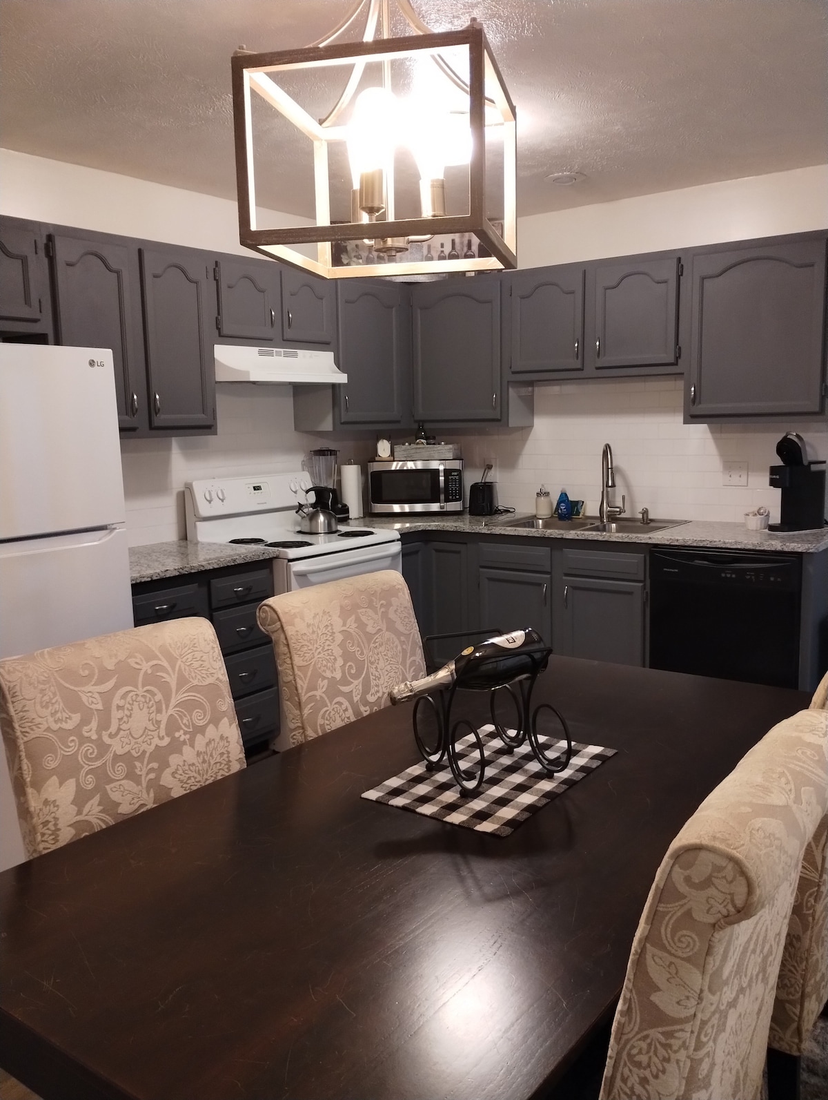 Enjoy a stylish experience at this centrally located home in Southern Indiana with easy and direct access to beautiful Newburgh/Evansville area. Bring the whole family to this great place with lots of room for fun. 4 bedrooms and 2.5 baths. 1 master with a private bathroom. 2 separate queen bedrooms with a shared full bath. And a bunk bedroom with a full and a twin mattress on top bunk. I also will leave a queen air mattress for guests to use.