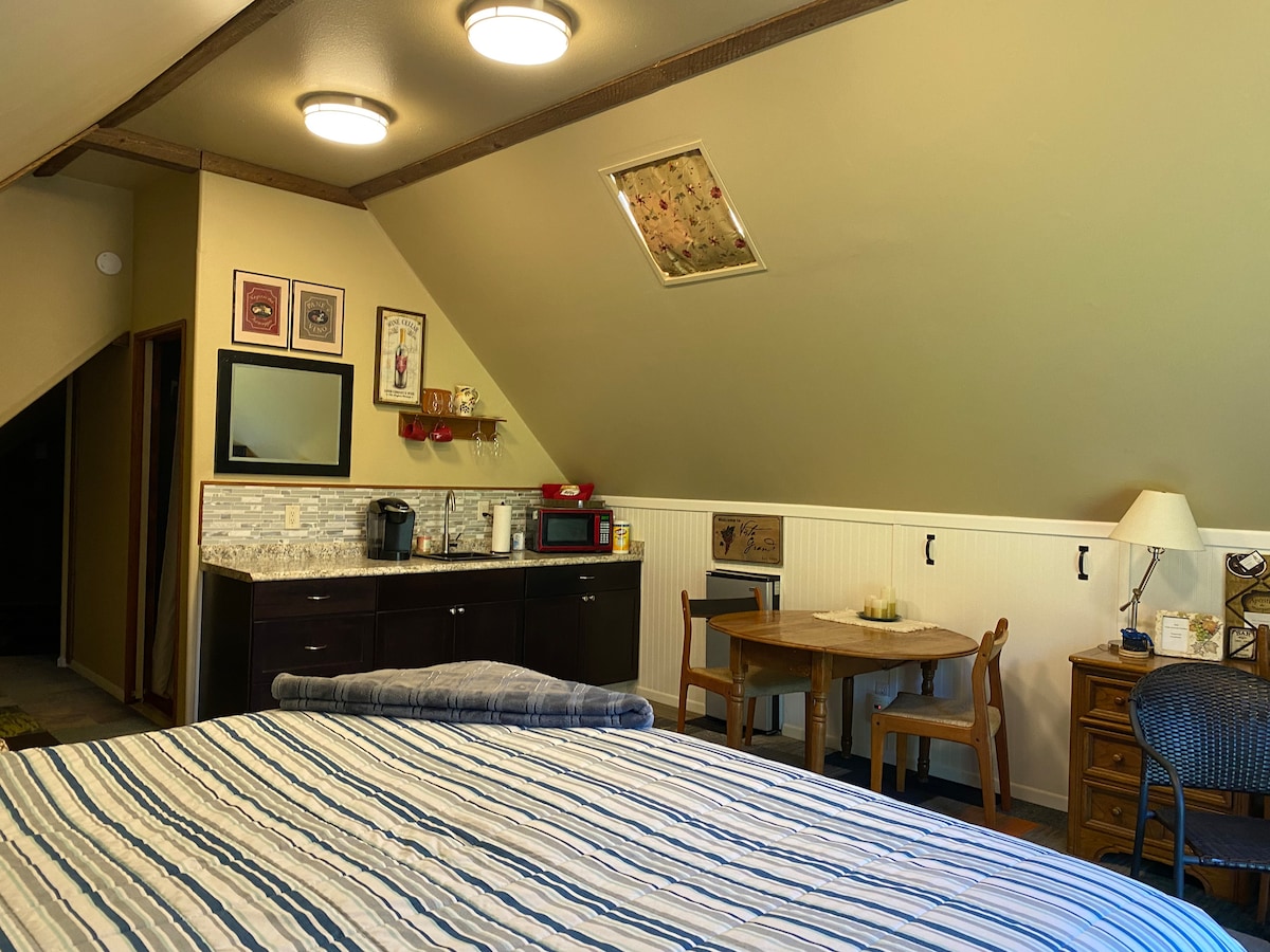 Vista Grande Vineyard Private Guest Suite welcomes you. Enjoy this quiet country retreat in the heart of the Chehalem Mountain American Viticulture Area. The loft space has a private entrance, king bed, bathroom and kitchenette. We are a working five acre vineyard featuring Pinot Noir grapes. Take in an impressive four mountain view of Hood, Adams, St Helens and Rainier from our patio by the small pond. We are located near local wineries: Ponzi, Raptor Ridge, Potters & Avidity.