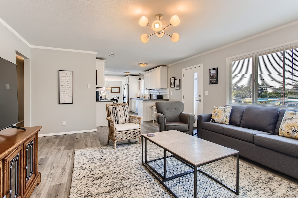 Gaudeix del teu viatge en una casa emblemàtica de mitjans de segle. Un ranxo actualitzat de mitjans de segle construït als anys 60 amb un disseny obert, d'estil minimalista que està ple de llum. Tant si prens un cafè al matí com si gaudeixes d'un llibre a l'atri, dinar al pati de darrere sota l'ombra de la sequoia gegant o el sopar a la sala d'estar/menjador oberts, tindràs tot l'espai per a tu. Estem a 10 minuts de Nike WHQ, a 5 minuts del centre de Beaverton i del centre comercial, i a 15 minuts del centre de Portland.