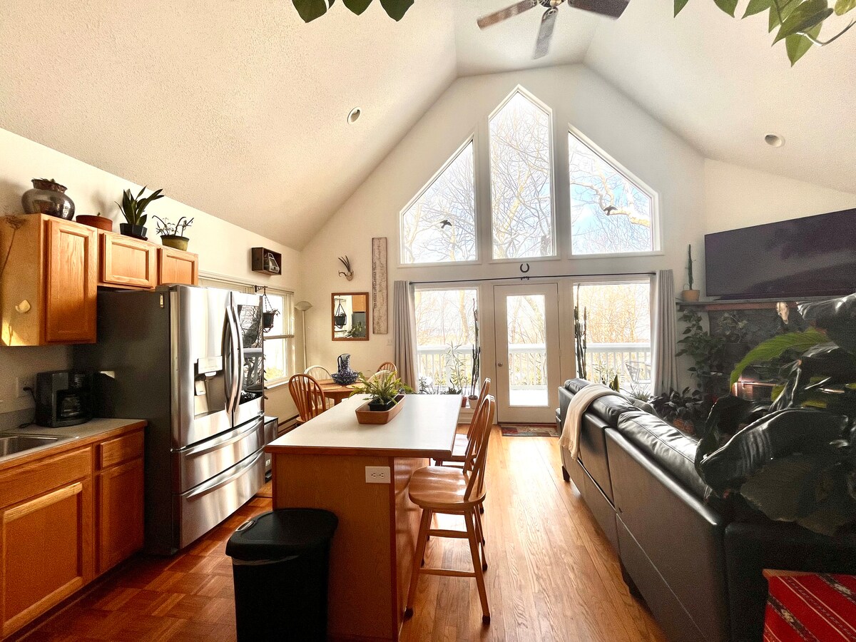 THIS IS FOR THE PRIVATE USE OF OUR DOWNSTAIRS APARTMENT IN OUR THREE STORY HOME--with a private entrance. This is a 1350 square foot unit. However, if you'd like to use the kitchen/dining room area, that is on the main floor you are welcome to do so. BUT there is a small kitchenette with sink, fridge, freezer, coffee pot, large toaster icen/air fryer and microwave in your unit. Two bedrooms and a third bonus- like bedroom with a full size futon and twin futon in it and a cool star light