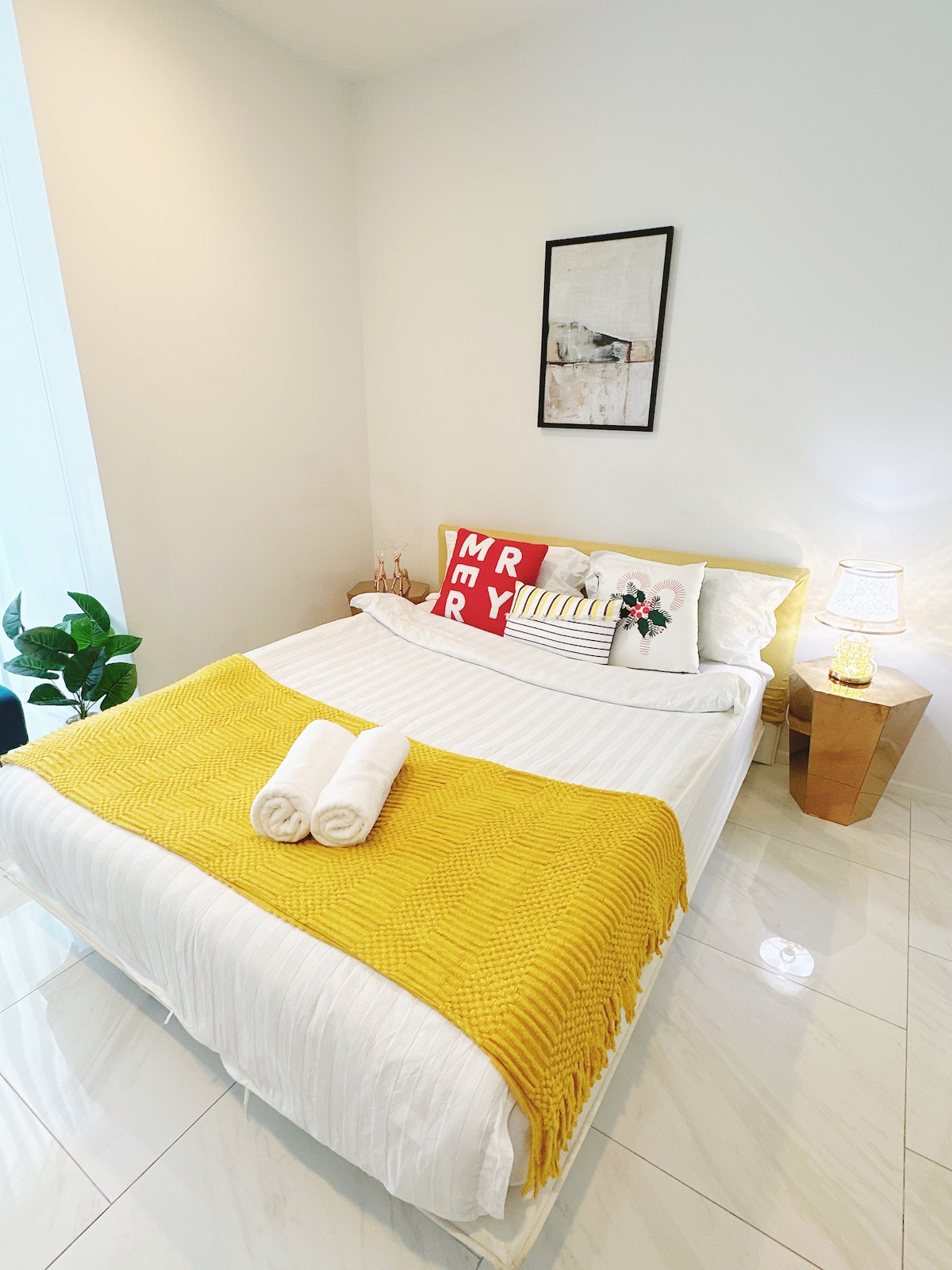 Spacious 62sqm pet-friendly suite, featuring a large balcony! Designed with an open living space that includes a smart TV, working area, 4-seat dining table, and fully equipped kitchen. The bedroom boasts a king-sized bed, another smart TV, powder area, and walk-in closet for your comfort. Both the living and bedroom provide access to the 4-fixture bathroom, which includes a relaxing bathtub and shower.Enjoy amenities such as swimming pool, gym and complimentary shuttle service during your stay!