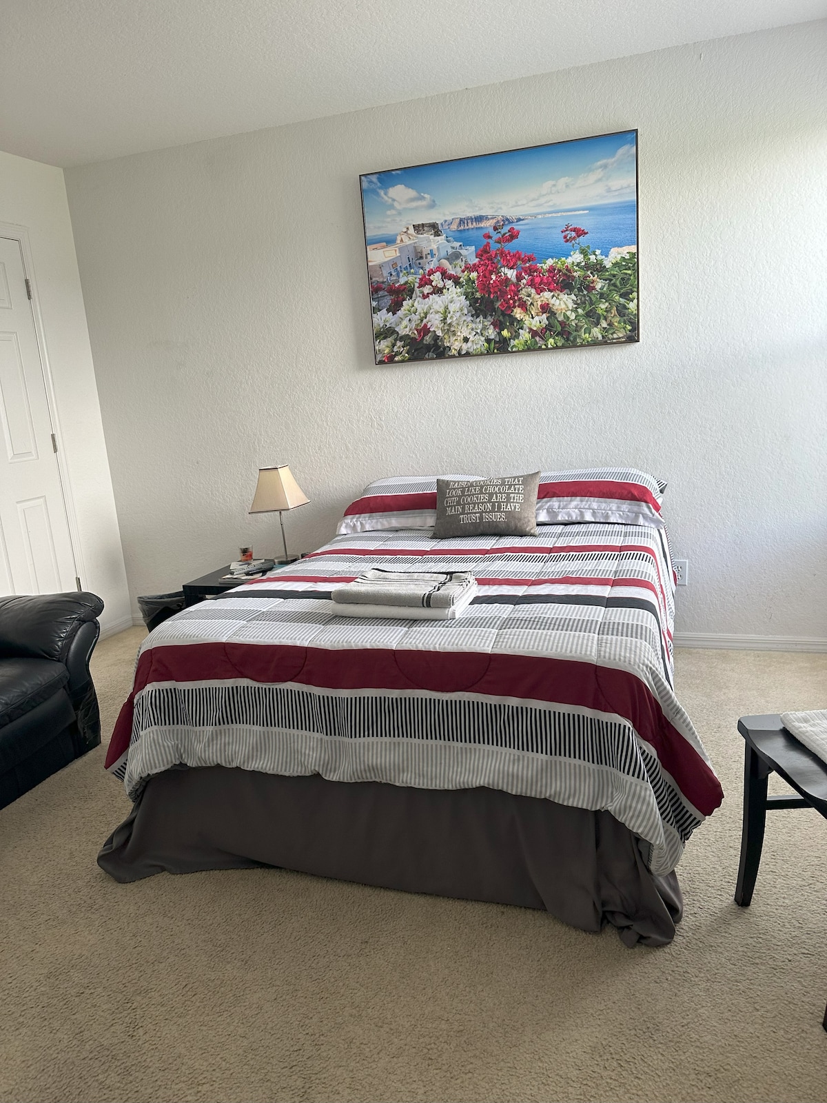 Welcome to this cozy and stylish retreat! This is a separate private apartment attached to our home. It is cozy and very clean. This thoughtfully designed living space combines modern elegance with comfort, perfect for unwinding after a day of exploring. The space is ideal for relaxing or catching up on your favorite shows. The space has a warm couch/futon and everything you need to feel at home. Ideal for solo travelers or couples looking for a comfortable and stylish getaway.