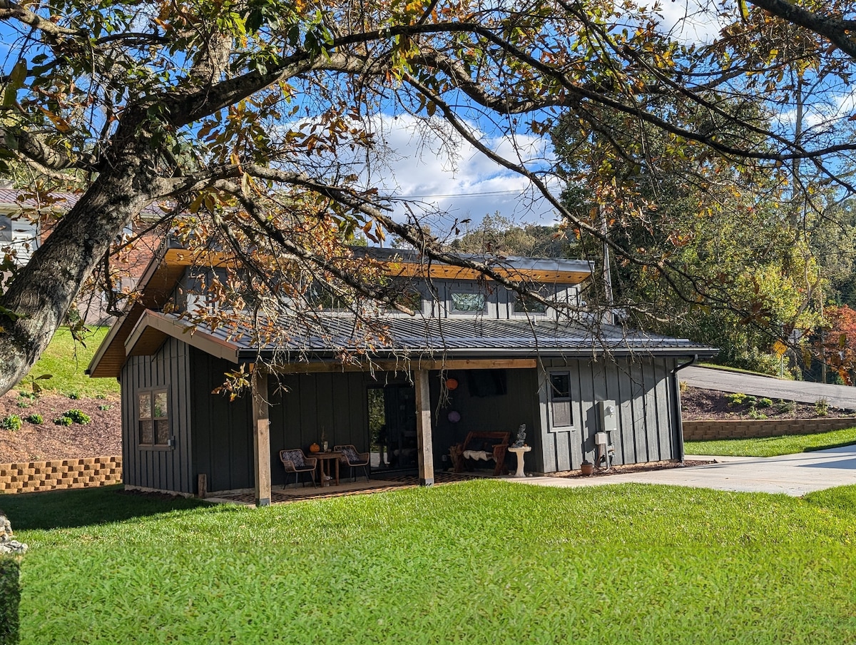 The Honey House és una casa de nova construcció situada al centre de Main St. a Waynesville. Aquesta escapada elegant disposa de 3 dormitoris i 2 banys complets, una cuina ben equipada i una llar de foc de gas. El pati del pati tancat té una banyera d'hidromassatge, una graella de propà i una foguera. Trobaràs indicis de la nostra passió apícola a tota la casa (però no hi ha abelles reals!), incloent-hi un gerro de mosca de la nostra mel per gaudir! Rentadora/assecadora, jocs, pack 'n play i un gran porxo cobert! Vine a allotjar-te una estona!