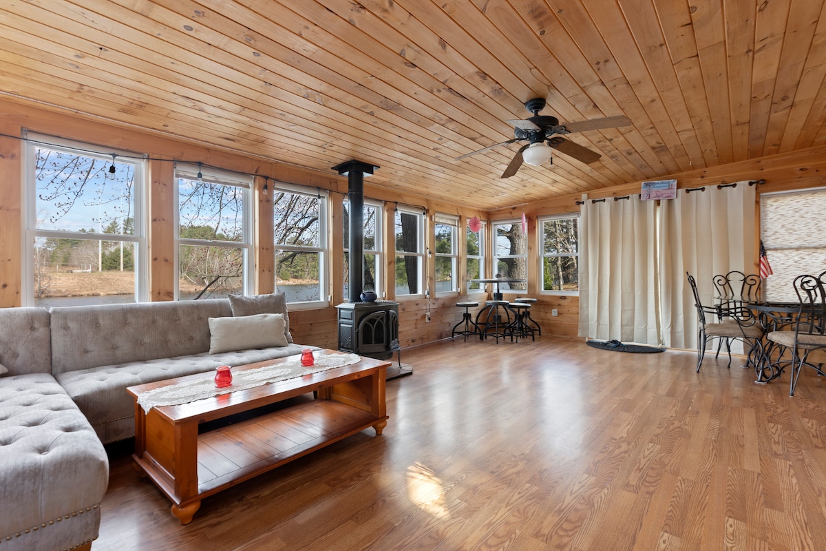 Aquest lloc màgic ha estat la nostra llar lluny de casa durant vint anys i estem encantats de compartir-lo amb tu. Esperem que tinguis la mateixa sensació de sortida quan ens asseiem a la terrassa a primera hora del matí o mires cap amunt una nit sense lluna mentre la Via Làctea passa pel cel fosc. La casa es troba en set hectàrees majoritàriament boscoses que envolten un estany pintoresc de castor. La propietat es troba en una carretera tranquil·la i sense asfaltar a la zona rural de New Hampshire.