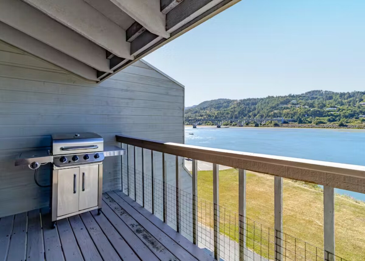 Ubicació ideal amb vistes al riu Rogue, amb vistes a l'oceà i al pont. Cuina completa, rentadora i assecadora, un dormitori a la planta baixa i un dormitori loft a la planta superior. Excel·lents vistes del riu, el pont, el port i el pescador.