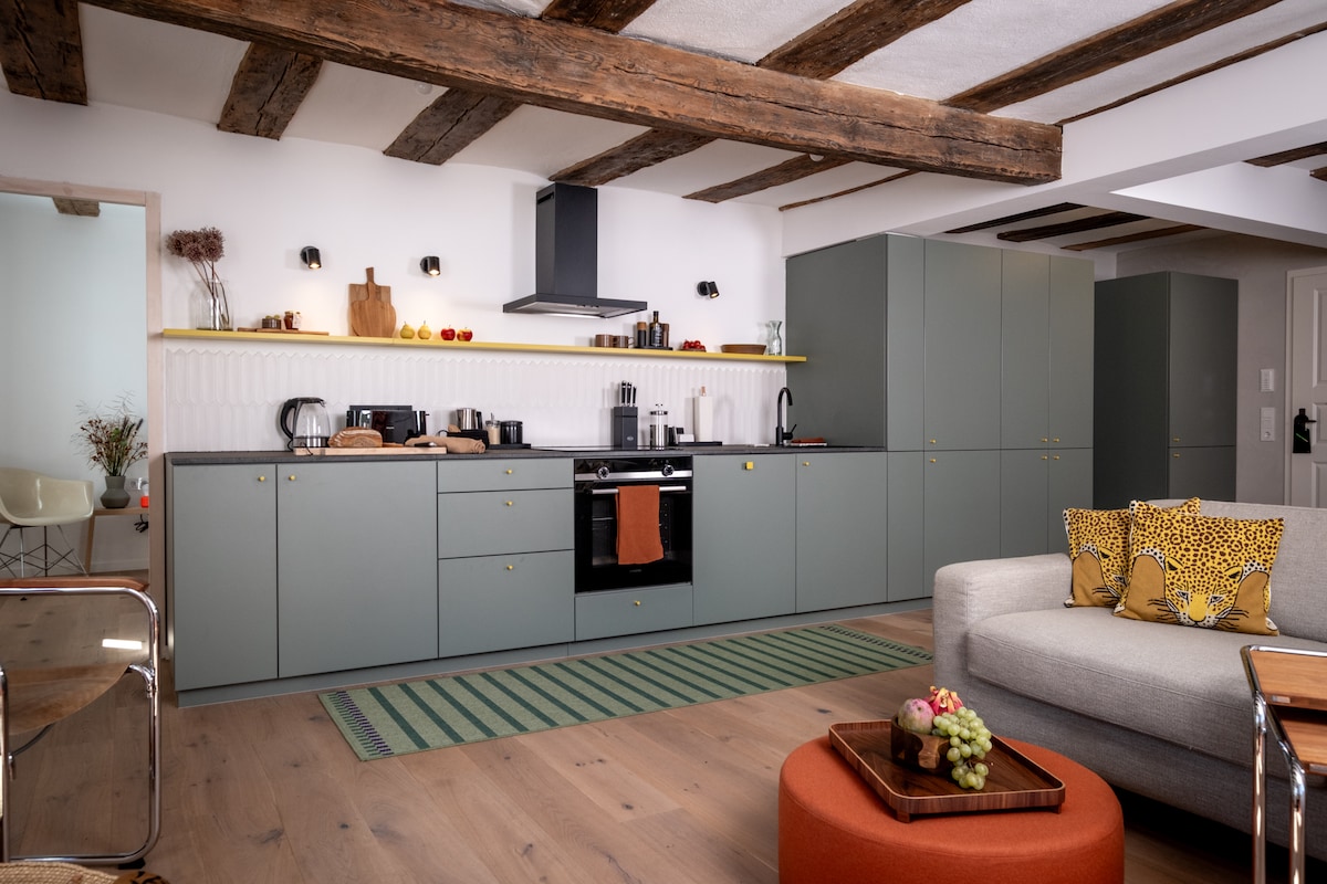 🍷 Hollands Pfefferhaus: un refugi de disseny exclusiu a Klingenberg am Main. Gaudeix de dues habitacions elegants 🛏️, una sala d’estar oberta i lluminosa ✨ i una terrassa privada amb vistes al jardí 🌿. Cuina prèmium amb placa d'inducció Miele, màquina Nespresso i rentaplats ☕🍳. Aire condicionat ❄️, wifi d'alta velocitat 📶, rentadora, accés independent 🔑, aparcament privat 🚗 i garatge segur per a bicicletes 🚴. Ubicació tranquil·la a prop del nucli antic i les vinyes 🍇: perfecta per a hostes exigents