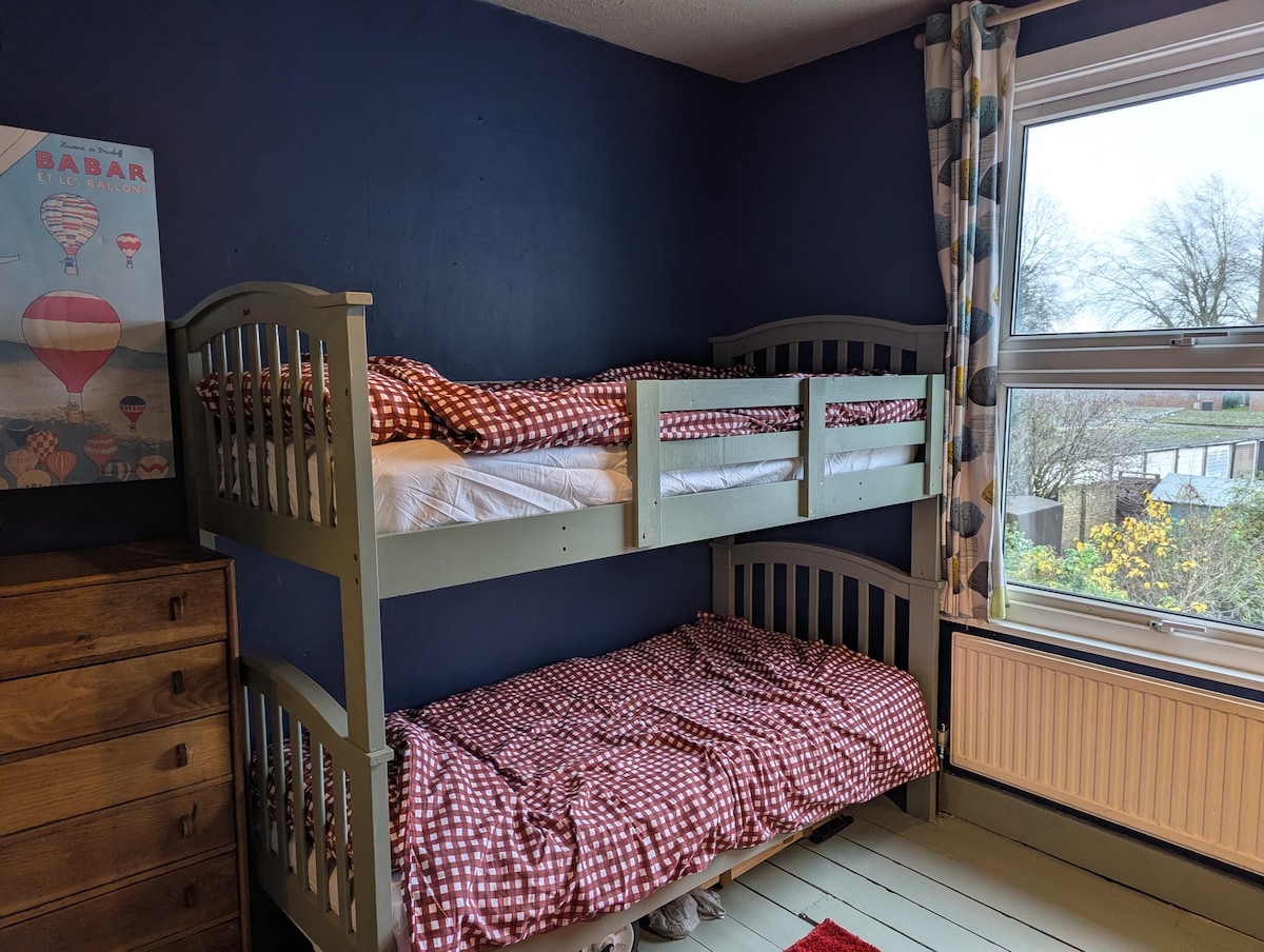 La nostra casa victoriana amb caràcter es troba en una carretera tranquil·la a 15 minuts a peu de les estacions de Woolwich DLR/Elizabeth Line (a 20 minuts del centre de Londres, a 5 minuts del centre d'Excel i a 15 minuts de l'O2). A la porta hi ha cafeteries simpàtiques, un gran pub de pizza de massa madre i un autèntic bar de cervesa. Rutes d'autobús a prop de Blackheath i Greenwich per anar de compres, fer turisme i museus. L'habitació dels hostes té vistes al jardí. Aparcament gratuït al carrer. Tenim un gos cocker spaniel, però es manté a la planta baixa. No és adequat per a nadons.