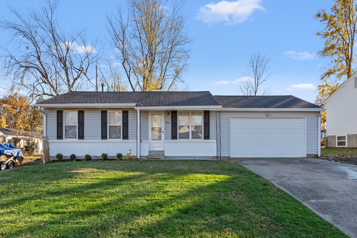 Et donem la benvinguda a la teva llar lluny de casa a Wentzville, Missouri! Les famílies i els amics peluts són benvinguts a la nostra acollidora i cèntrica casa. Capacitat per a 6 persones: 1 llit «king size», 1 «queen size» i 1 sofà llit de matrimoni Cuina totalment equipada amb tot el que necessites per crear un àpat deliciós o una tassa de cafè Sala de jocs i bugaderia situades al soterrani: una màquina d'arcade de 60 jocs gratuïts i futbolí. Televisor Roku situat als dos dormitoris, a la sala d'estar i al pati Pati totalment tancat amb foguera