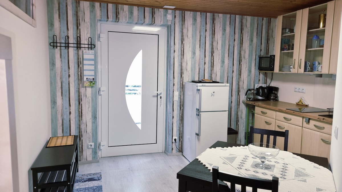 Estarem encantats de donar-te la benvinguda en un pis increïblement petit i acollidor de 35 metres quadrats. Té capacitat per a tres persones. L'any 2019 vam renovar completament l'apartament i el vam moblar recentment. Trobaràs una cuina gairebé totalment equipada amb menjador i televisor, una zona de dormitori oberta amb llit doble i individual i un bany amb banyera. A través de la porta d'entrada tens accés directe a la gran terrassa. La rentadora i l'assecadora es poden utilitzar en una bugaderia independent de pagament si ho sol·licites.
