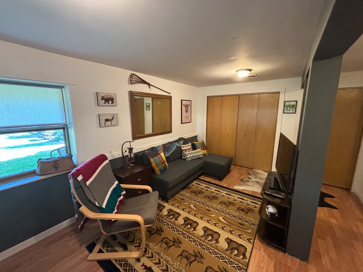 Ens encanta tot sobre la nostra casa a la vora de la muntanya al costat de Grand Vue Park i gaudim de com els nostres hostes també l'estimen. Aquest espai va ser dissenyat amb amor i atenció al detall. La suite extremadament espaiosa amb entrada privada té una bella coberta amb vistes a la nostra pastura de muntanya i la terra boscosa darrere nostre. Una paret sencera de finestres ofereix unes vistes perfectes. Molts hostes diuen que el llit King size és el més còmode on han dormit. El bany és de somni.