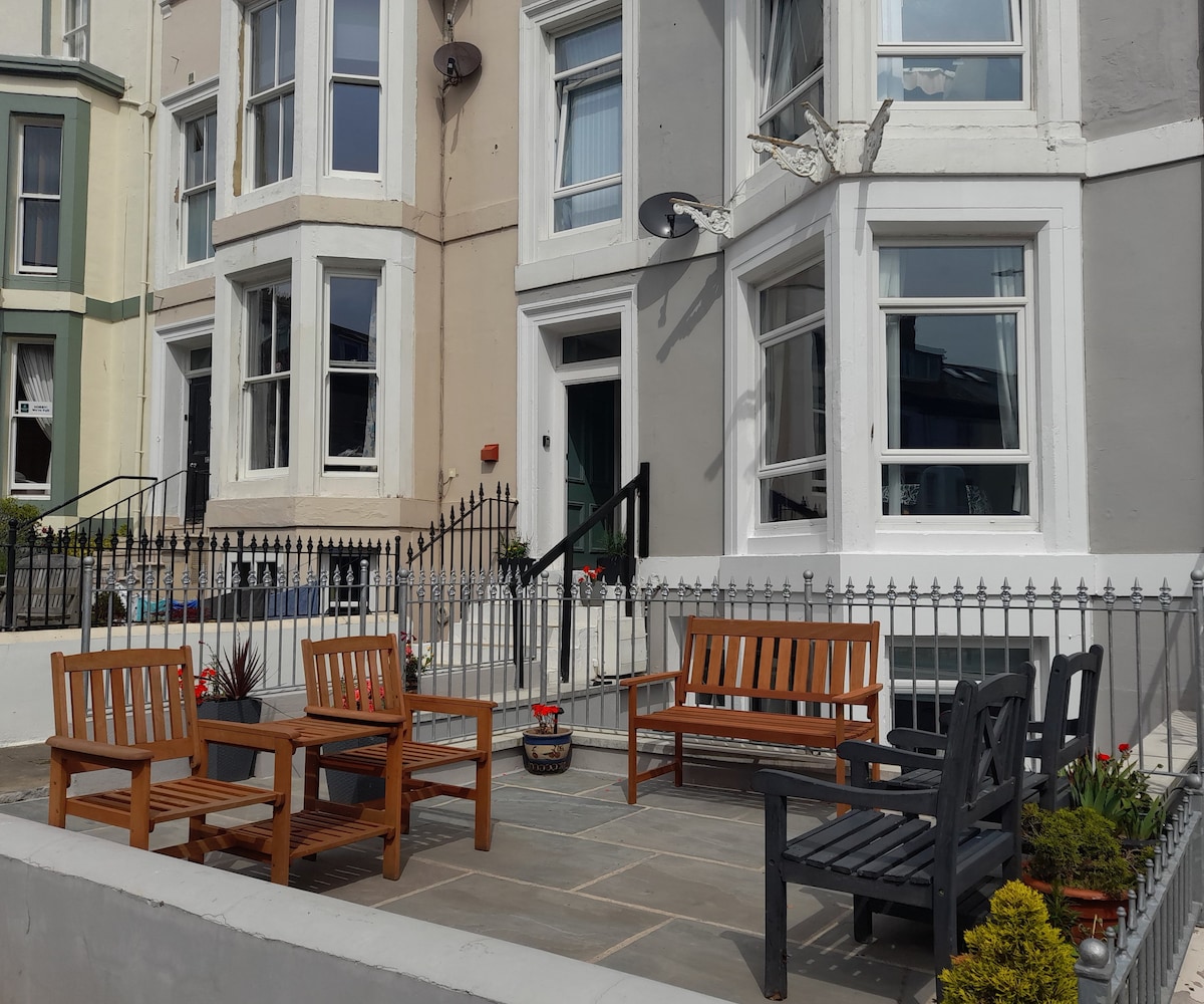Aquest modern pis de planta baixa amb temàtica nàutica (a la part davantera i a la part posterior) es troba a poca distància a peu de la platja, els pubs i el bulliciós centre de la ciutat, però té una ubicació ideal al West Cliff per gaudir de la part més tranquil·la de la ciutat. Espaiós saló/cuina/menjador amb sofà llit i vistes fabuloses de l'abadia, un dormitori doble independent i una gran dutxa independent. Plaça d'aparcament a l'allotjament o aparcament a 1 minut. Ús compartit del pati frontal per gaudir de les vistes. Els gossos ben portats són benvinguts.