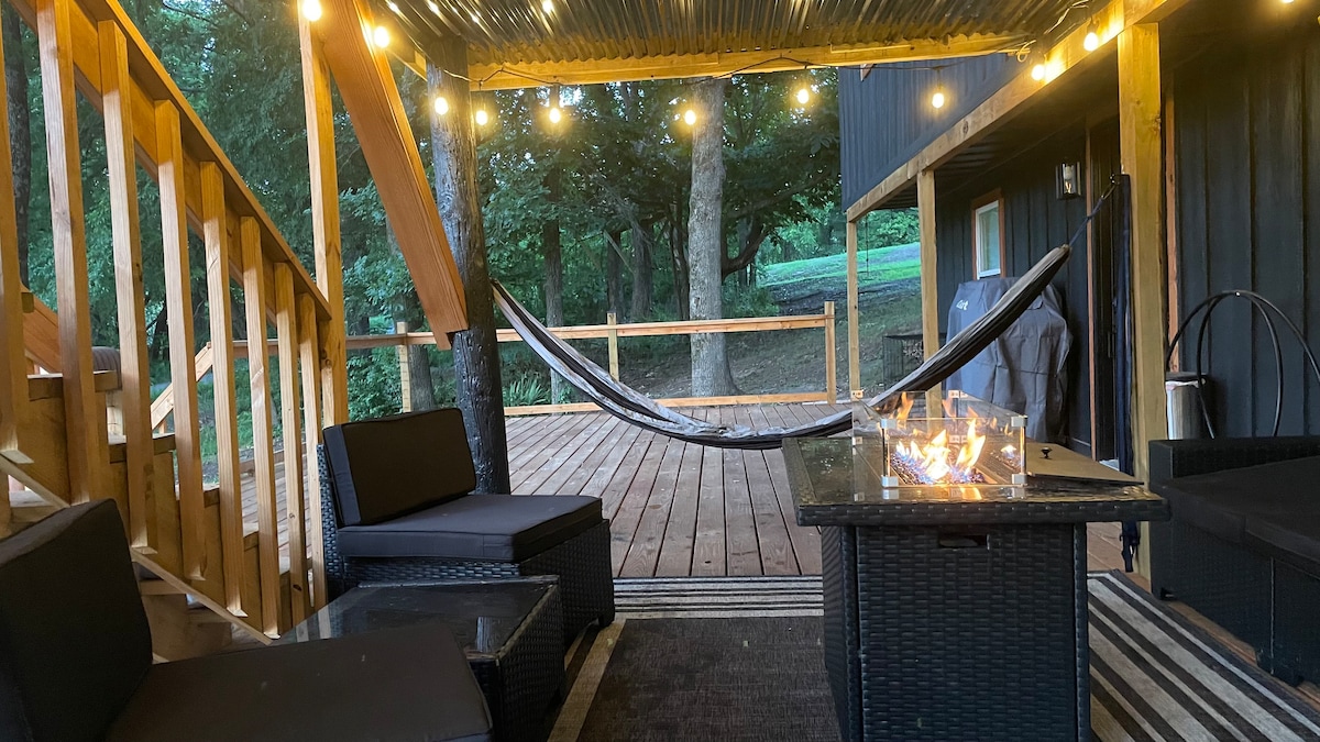 Hogeye Hideaway està situat en un entorn privat amb una vista preciosa de les muntanyes Ozarks. No obstant això, a poca distància en cotxe de Devils Den State Park i la Universitat d'Arkansas/Dickson Street. És un lloc fantàstic per a un refugi per a parelles o per a grups que busquen assistir a esdeveniments locals al nord-oest d'Arkansas. Gaudeix de la llar de foc interior en dies freds o de la llar de foc a l'aire lliure amb S 'mores! També hi ha espai per a tendes de campanya per als hostes addicionals o perquè els nens i el gos puguin córrer.