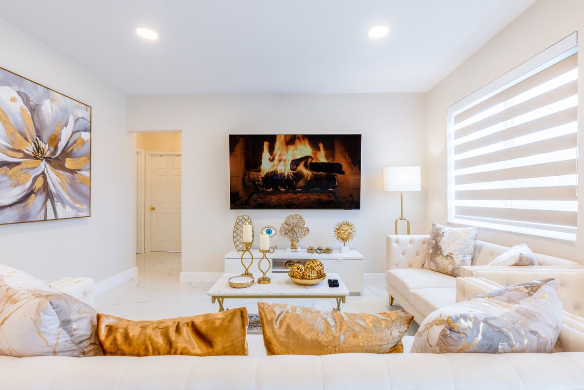 Aquest luxós allotjament de quatre dormitoris i dos banys et convida a experimentar la fusió perfecta de l'emoció de la ciutat i la relaxació inspirada. Relaxa't al jacuzzi després d'un dia explorant la ciutat o gaudeix de la distribució oberta i espaiosa que és perfecta per a reunions familiars o vacances en grup. L'allotjament està dissenyat per ser el teu refugi tranquil, que ofereix una escapada privada de l'emoció de la ciutat i està a pocs minuts de restaurants, compres i de les famoses platges de Miami.