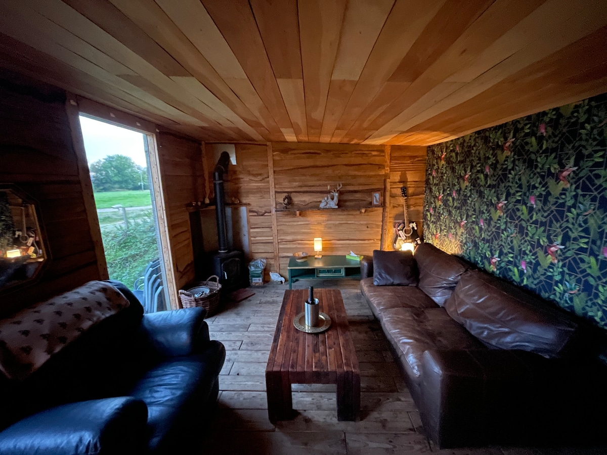 Aquesta acollidora caseta, situada en un prat privat de 12 hectàrees a la vora del riu, ofereix un escapisme complet independentment del temps que faci! Just abans de la vostra arribada, encendrem la llar de foc de l’interior i posarem el Prosecco en gel (com a extra opcional) 🥂 Contempla les estrelles des de la banyera d’hidromassatge de llenya, que s’escalfa la nit anterior a 40 graus 🔥 perquè puguis deixar enrere les preocupacions de la setmana. Tot i que estem totalment desconnectats de la xarxa elèctrica i ens envolta un paisatge preciós amb un ambient salvatge, a prop hi ha moltes rutes de passeig fantàstiques i restaurants on es poden portar gossos.