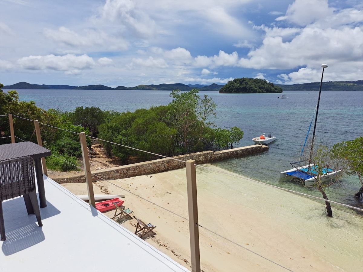 Gaudeix d'accés EXCLUSIU a la teva pròpia illa privada a prop de Coron, Palawan. Fes snorkel als esculls de corall, fes caiac al capvespre i recorre les illes! ✔ Dues cases privades: The Blue House (2BR) i The Casita (1 BR) ✔ Aire condicionat a cada habitació Wifi per satèl·lit Starlink ✔ ràpid, televisor intel·ligent amb Netflix, Youtube, etc. Ús ✔ gratuït de caiacs, rutes de senderisme, cabana de menjador a l'aire lliure ✔ Zones d'estar, cuina completa Terrassa ✔ d'observació Tot funciona amb energia solar. Es poden organitzar excursions per les illes i activitats de submarinisme. De propietat i gestió 100 % filipina.