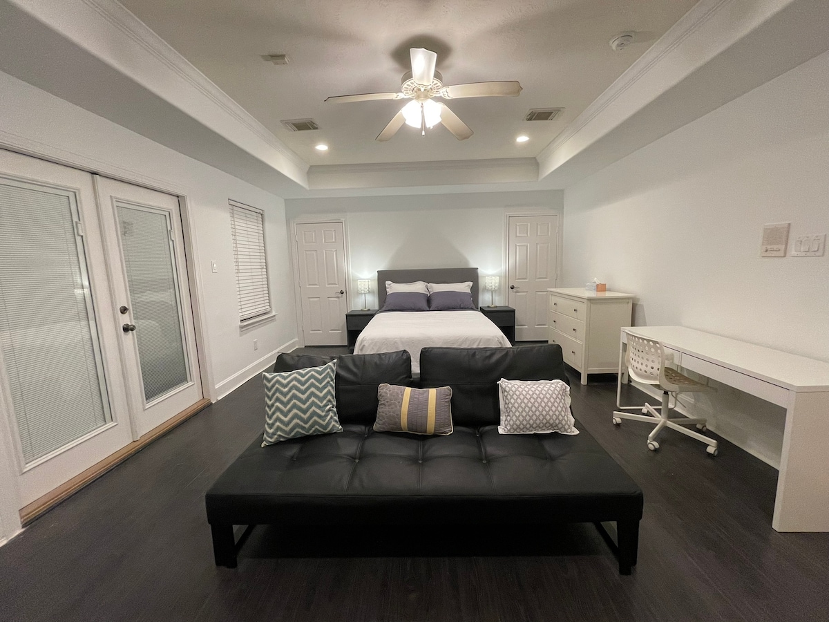 TRANQUIL·LITAT, ACOLLIDOR i CÒMODE. A poca distància a peu de Rice Village, el centre mèdic de Texas, la Universitat d'arròs, l'estadi i la pista de running i el tren lleuger de Houston. Wifi, estacions de treball designades, televisors intel·ligents, Keurig, aparcament fora del carrer a quatre passes de la porta i zones de terrassa a l'aire lliure aïllades. A 8 minuts en cotxe de l'estadi NRG (els hostes passats van caminar fins al super bowl!) i a poca distància en cotxe de la Galeria o el centre de la ciutat. Perfecte per a visites familiars o de negocis.