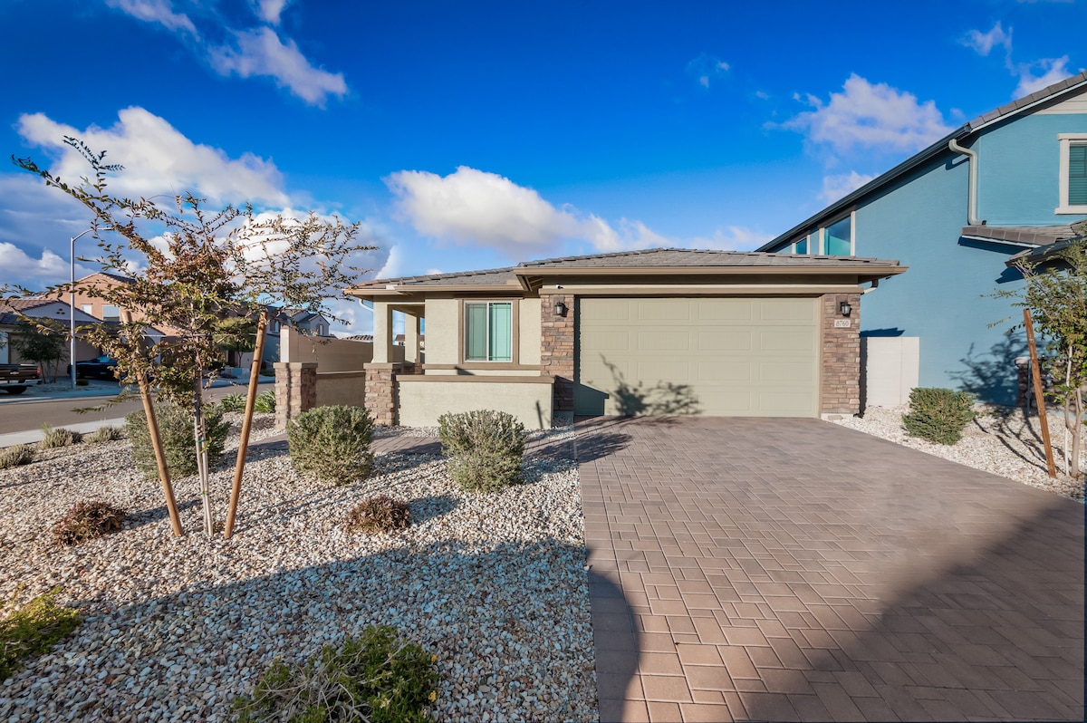 Descobreix la comoditat en aquesta casa de 3 dormitoris i 2,5 banys, totalment renovada, situada en una comunitat tancada segura. L'allotjament té un ambient càlid i acollidor, acabats de primera qualitat, televisors i la connexió a internet més ràpida. Surt i gaudeix de la piscina que hi ha a l'altra banda del carrer. Aquest allotjament et situa al cor de l'acció: a menys d'un quilòmetre de l'estadi State Farm, el barri de l'entreteniment, l'estadi Desert Diamond Arena i el casino. Tant si vens per a un partit, un concert, els entrenaments de primavera o només per a una escapada de cap de setmana.