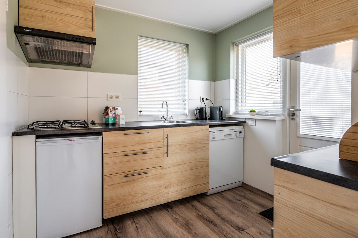 Vakantiewoning (juli 2017)van 35 m2. De woning heeft 1 slaapkamer met opgemaakte boxspring. 2 x 1 persoonsdekbedden. Er is ook een televisie in de slaapkamer. Een luxe badkamer en apart toilet. De keuken is volledig ingericht met vaatwasmachine, oven-magnetron, koffiezetapparaat en waterkoker. Wasmachine is aanwezig. In de woning heeft u gratis WiFi. Ideaal voor 2 personen en eventueel een klein kindje. Toeristenbelasting dient ter plaatse te worden voldaan. 2,40 euro per persoon per nacht.