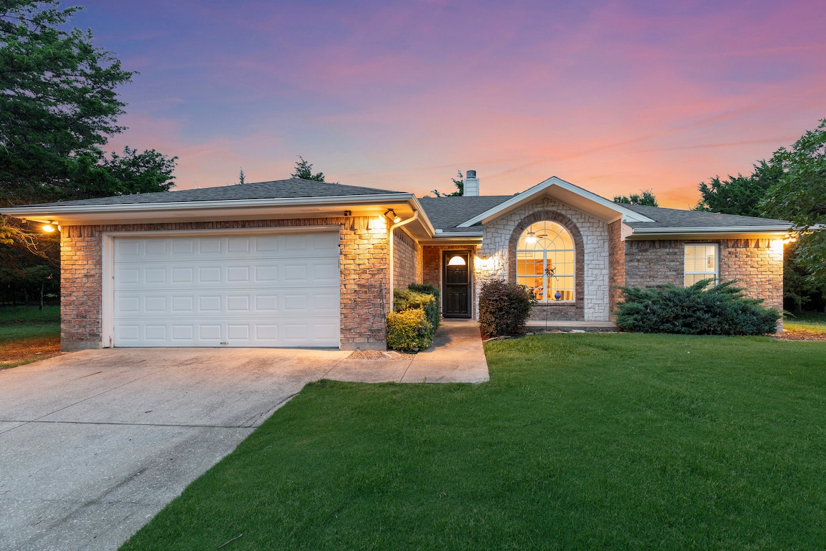 Welcome to Texas Prairie Cottage. Relax in the country with games, bbq, snd s'mores! Lots of room to spread out on our 1.3 acre property. Play games, soccer outback, watch movies, or enjoy the sunrise and sunsets from the large front porch or backyard fire pit. If you are feeling adventurous, visit with the sheep, goats, and donkey. Room for 6-8 guests in our 3 bed, 2 bath cottage. You won't forget your stay on the prairie.