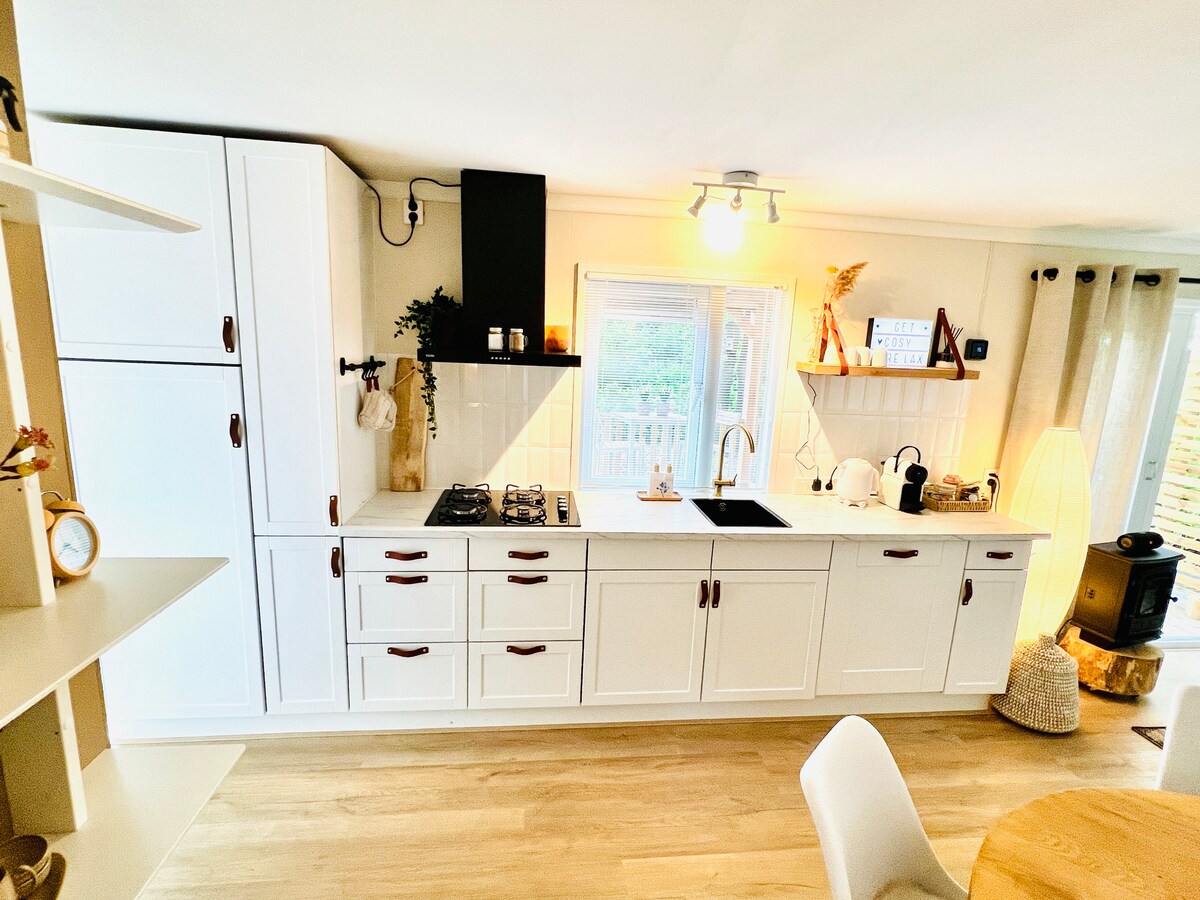 • The Veluwe is the largest push moraine complex in the Netherlands. On the north-western edge of this forest you find this gazebo near the locally famous sand drift. It sits on 3 acres of woodland belonging to a detached house. • The gazebo is fully insulated and consists of three spaces: bathroom, bedroom and lounge. There is no cooking option, but there is a small oven for you to use. • The gazebo was fully renovated in 2023 and is decorated in a contemporary mid-century modern style.