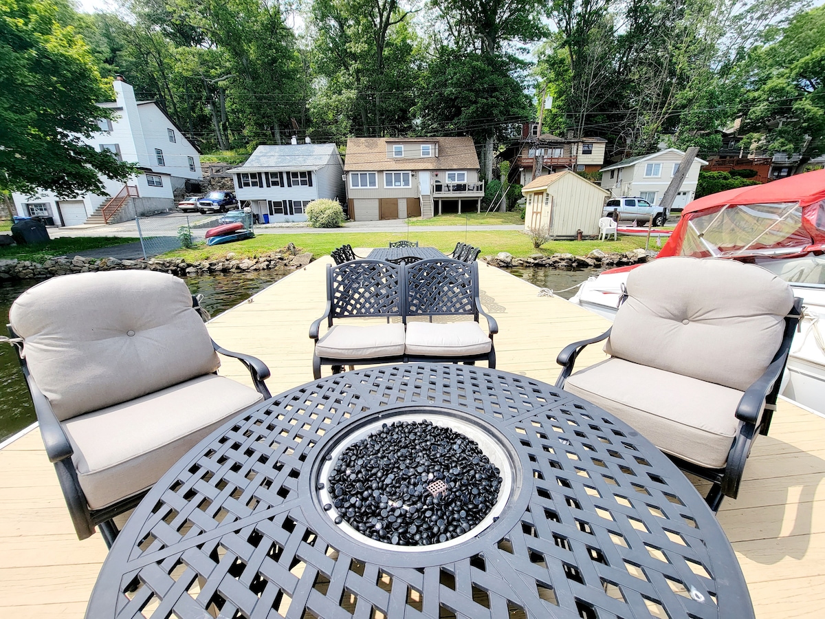 Leisure Lake Lodge es troba al bell Lake Hopatcong, a només 1 hora de Nova York. T'enamoraràs amb impressionants vistes al llac des dels 3 nivells d'aquesta gran casa, dues cobertes massives sobre el llac i una casa totalment actualitzada amb capacitat per a 9 persones. Llar de foc, banyera d'hidromassatge, sauna, futbolí, ping pong, graella, televisor UHD de 65", cuina més nova totalment equipada, banys més nous, matalassos més nous, davant del llac de 50 peus amb moll de 80 peus, caseta de vaixells de 32x20 peus amb terrassa de 400 SF sobre el llac i sala de jocs de 19x12 peus de 4 temporades amb ping pong.