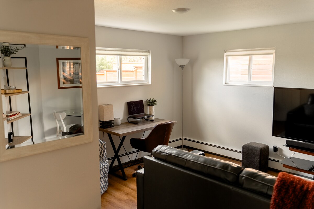 Escape to a private, newly renovated garden-level suite with your own fenced backyard and entrance — perfect for couples, remote workers, and dog lovers. Just minutes from I-70, enjoy easy access to Denver, Golden, and the mountains while relaxing in a quiet, cozy space designed for comfort and privacy. • Private entrance + fully fenced yard • Fully stocked kitchen • In-unit washer + dryer • 55” Smart TV • Dedicated workspace • Gigabit Wi-Fi • Free on-site parking
