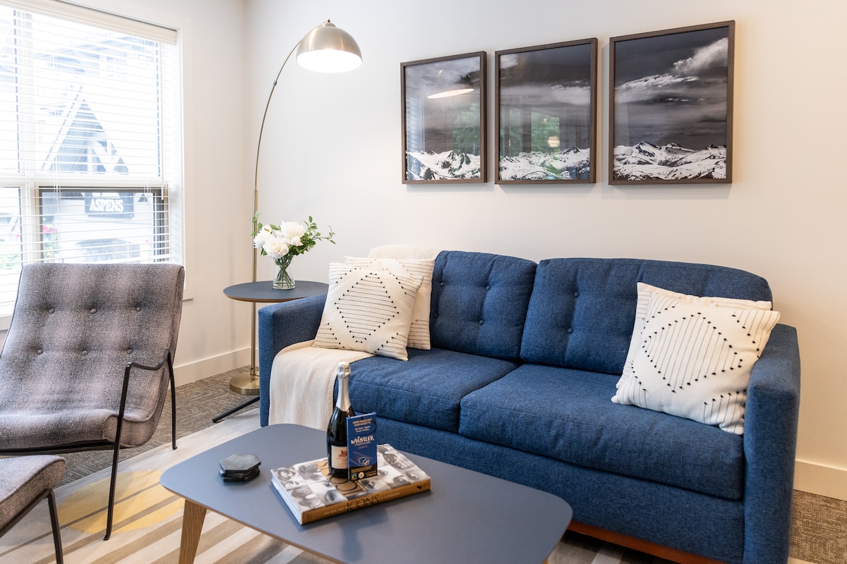 Et donem la benvinguda al teu oasi de muntanya. A 1 minut a peu de l'elevador Blackcomb! El nostre apartament modern és un dormitori lluminós i espaiós amb finestres envoltant per a unes vistes perfectes de les muntanyes i els arbres. Gaudeix de les vistes de la muntanya Whistler mentre prens un cafè a la taula de la cuina! La suite ho té tot: - llit «king size» - sofà llit - Cuina completa - banyera d'hidromassatge - Keurig - Altaveu Bose - aire condicionat central - millorat el juliol de 2025 L'edifici disposa de gimnàs, bugaderia, piscina i banyera d'hidromassatge exterior.
