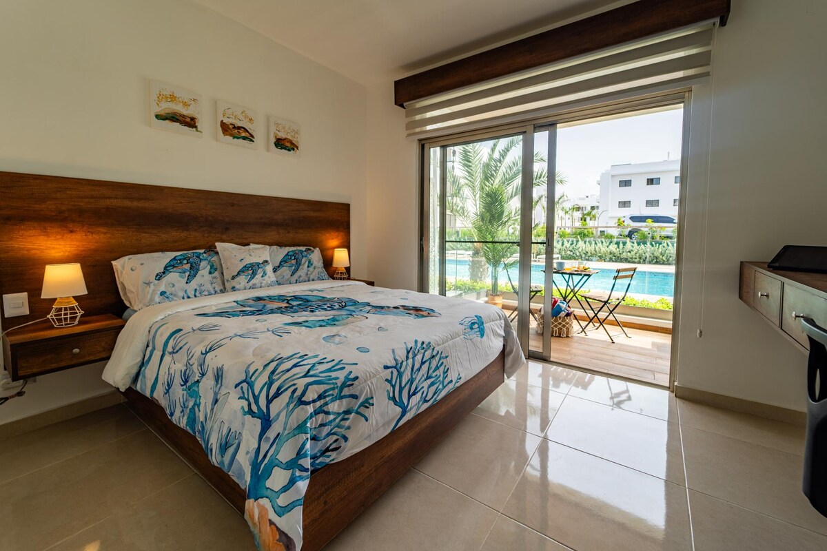 ❤️«En Mike i la Heidi van ser impecables (6 de 5 estrelles).» ✅Piscina privada Trasllat ✅a la platja a la carta ✅Platja (6 minuts en cotxe) Es permet nedar de ✅nit ✅Accés gratuït a Cap Cana Resort Wifi ✅demés de 100 Mbps ✅Restaurants (11 min) Recollida ✅a l'excursió (1 minut) ✅Botigues (7 minuts en cotxe) Apartament de 650 peus², 1 dormitori i 1 bany Les reserves inclouen: Amfitrió amb ✅fluïdesa en anglès/espanyol Servei de conserge ✅personal ✅Ajuda per a la planificació de viatges ✅Itinerari basat en # days Preguntes freqüents ✅del vídeo Botiga de vacances ✅exclusiva Informe ✅diari d'electricitat
