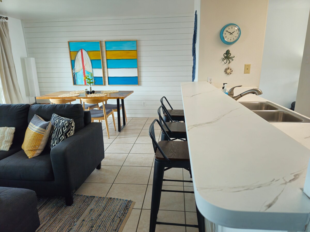 🐚 Et donem la benvinguda a la teva escapada a la platja de North Padre Island! A l’interior, gaudeix d’un espai lluminós i elegant amb una cuina totalment renovada (el 2023), una acollidora sala d’estar amb sofà llit i un dormitori privat amb llit «king-size» i bany privat. Disposar de rentadora/assecadora a l’allotjament fa que les estades llargues siguin més còmodes. A només 5 minuts a peu (0,2 milles) de la sorra i del surf. Passa els matins caminant per la costa, les tardes a la vora de la piscina i les nits relaxant-te amb tota la comoditat. * Permís per a lloguers de curta durada 304488