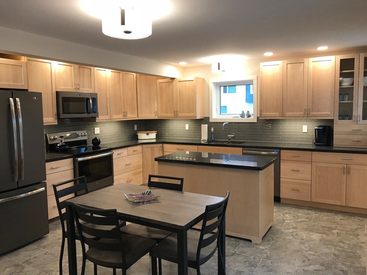 Relaxa't en aquest nou apartament davant del riu al pols del centre de Whitehorse. Camina o en bicicleta, des del camí de la porta del riu, fins a tots els serveis de la ciutat, compres, supermercats, restaurants i bars. Aquest nou pis (amb ascensor) té la seva pròpia terrassa privada per relaxar-se i fer barbacoes, però també una terrassa comuna a la terrassa amb vistes a la ciutat, a les llums del nord i al riu Yukon. Camina o pedaleja pels senders del riu fins al parc dels vaixells, els museus, el carrer principal i el centre cultural Kwanlin Dun. Passa- t'ho bé!