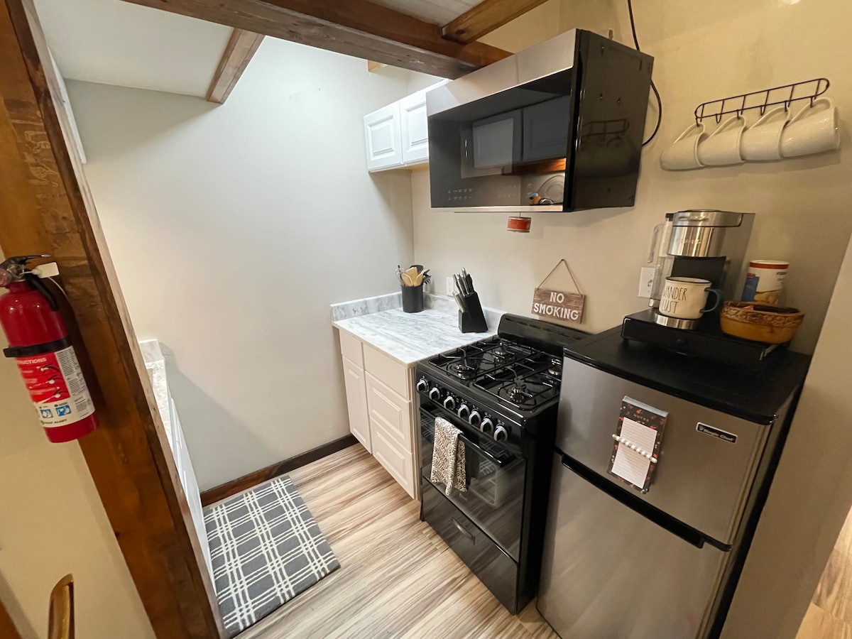 Aquest «pis petit» rústic és el secret que ni tan sols sabries que hi havia (pis al soterrani). Amb cuina, bany complet, llit de mida queen i sofà convertible, això és tot el que podries esperar d'un petit espai per viure! Tenim diversos llibres i jocs de taula per gaudir del temps junts i la pantalla plana de 50 polzades és allà, per si de cas la lectura i els jocs no són el teu fort. Si necessites un lloc tranquil per escapar-te una estona o un lloc net per recolzar el cap, som aquí per ajudar-te!