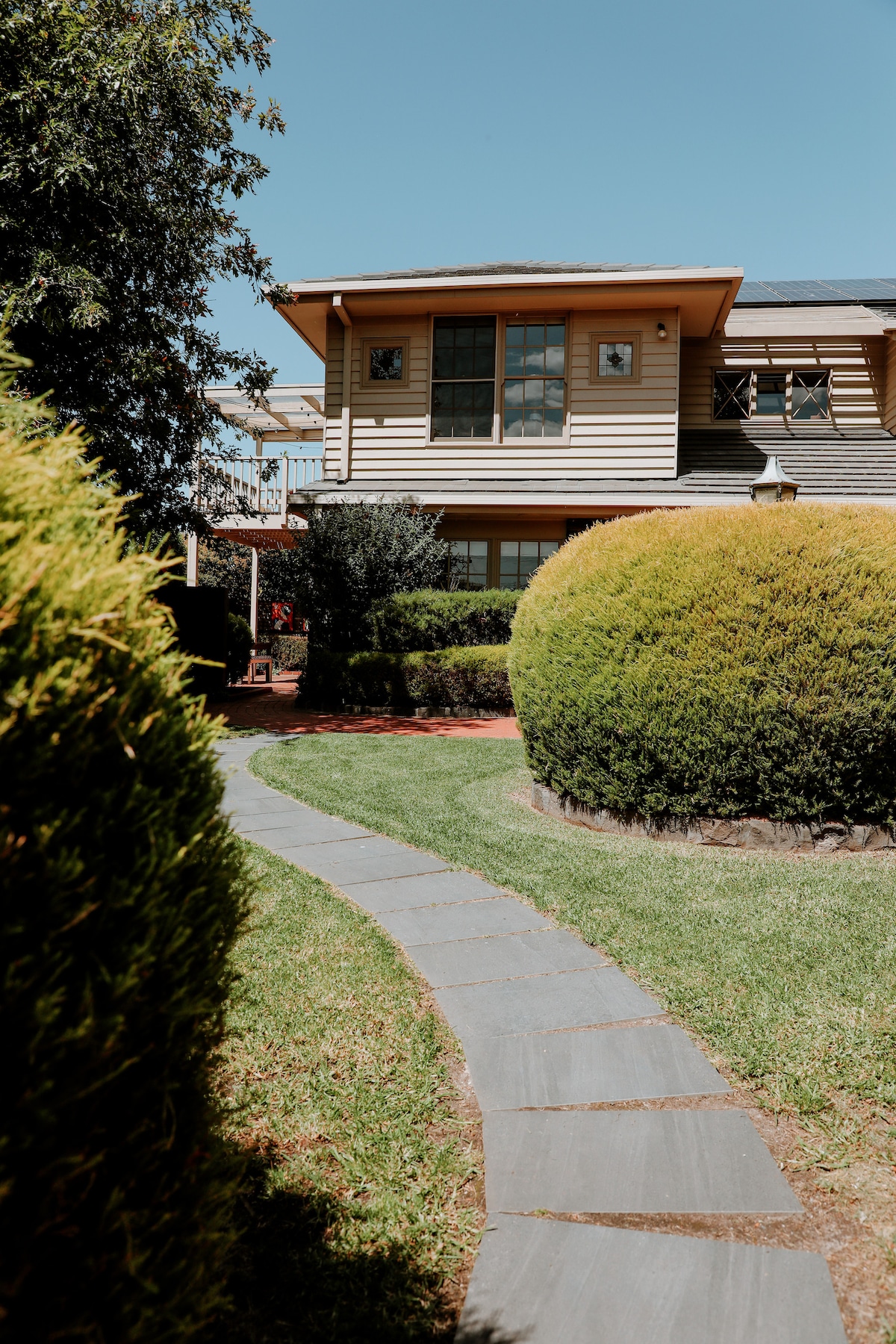 Sleeps up to 6 guests across 3 bedrooms 3 toilets, 3 showers, and 2 bathtubs Heating and cooling in all rooms dining area, spacious lounge, and fully equipped commercial-style kitchen Private 6-person hot tub spa Indoor and outdoor wood fires Set on a private acre with tranquil gardens, lily pond, Guests have sole access to all facilities Dog-friendly for up to 2 dogs (with prior approval); NO CATS fresh bakes on arrival Private carpark for 4 cars Free wifi