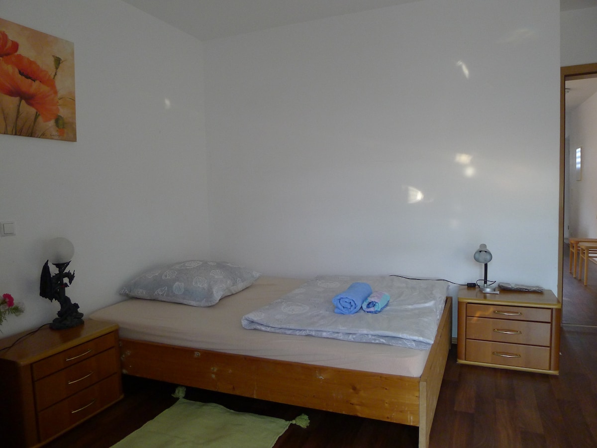 Pis espaiós a la planta baixa d'una casa de dues famílies. Hi ha una entrada privada, un gran vestíbul, un dormitori doble i una sala d'estar amb televisor. La cuina és amb cafetera., bullidor, microones, fogons, forn, rentaplats, plats i nevera equipada, menjador addicional,bany amb dutxa, tovalloles i vàter independent. Només per a 2 persones, no és adequat per a nens. No es permet visitar l'allotjament. No es permet l'ús del jardí.