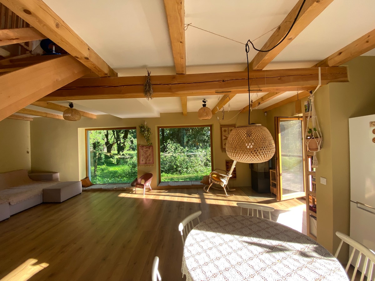 Et donem la benvinguda a una casa rural amb vistes al bosc en plena natura situada al districte del llac Dobrzyń (comuna de Skępe, voivodat de Cuiàvia-Pomerània). La zona es caracteritza per una gran quantitat de llacs i boscos. A les immediacions de 3 km Wielkie, Łąkie, Sarnowskie Llacs. La casa té tot el que necessites per relaxar-te. El barri és tranquil i tranquil. Pots fer una barbacoa i encendre un foc. Hi ha un parc infantil. L'allotjament de l'amfitrió és a prop. La casa rural abans de cada estada està ozonitzada.