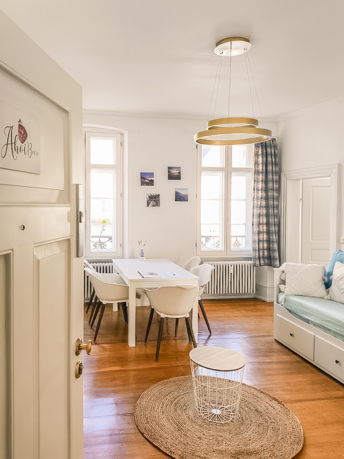 Un apartament lluminós i modern t'espera en una ubicació tranquil·la. L'apartament d'aproximadament 75 m² està situat a la primera planta d'una casa per a dues famílies. Té una cuina oberta i una sala d'estar amb televisor. Hi ha una plaça d'aparcament just davant de l'apartament. A la cuina equipada hi ha tots els estris de cuina necessaris (olles, coberts, gots, etc.) Només quan es faci una reserva per a més de 3 persones, el segon dormitori amb llit doble (180x200) està disponible - recàrrec de 35 € per nit.