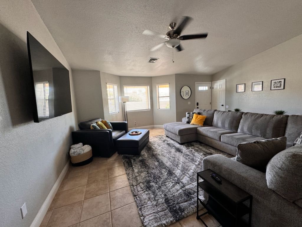 Descobreix el refugi perfecte per la Ruta 66 a Kingman, Arizona! Aquesta acollidora casa de 2 dormitoris i 1 bany té capacitat per a sis persones i és ideal per a famílies, viatgers per carretera o buscadors d'aventures. Gaudeix d'una cuina totalment equipada, una sala d'estar còmoda i una wifi ràpida. Situat a prop de la ruta històrica 66, senderisme i rutes de ciclisme. És la base perfecta per explorar el Gran Canyó, la presa Hoover i els cellers locals. Relaxa't sota el cel del desert després d'un dia d'aventura. Les estades llargues per a professionals temporals són benvingudes.