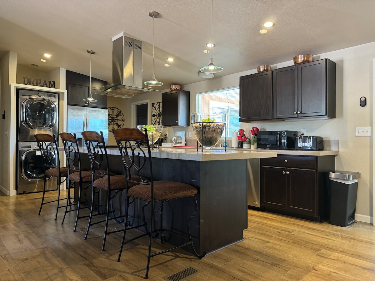 Et donem la benvinguda al nostre acollidor refugi de 2 dormitoris i 1 bany al cor de Kingman, Arizona. Aquest allotjament, perfecte per a un màxim de sis persones, ofereix un ambient càlid i acollidor amb dormitoris còmodes, una cuina totalment equipada i una elegant sala d'estar per relaxar-se després d'un dia d'exploració. Situat a prop de la històrica Ruta 66, del centre de la ciutat i de restaurants locals, és un punt de partida ideal per descobrir el Grand Canyon, la presa Hoover i molt més. Gaudeix de wifi gratuït, aparcament i totes les comoditats de casa teva durant l'estada!