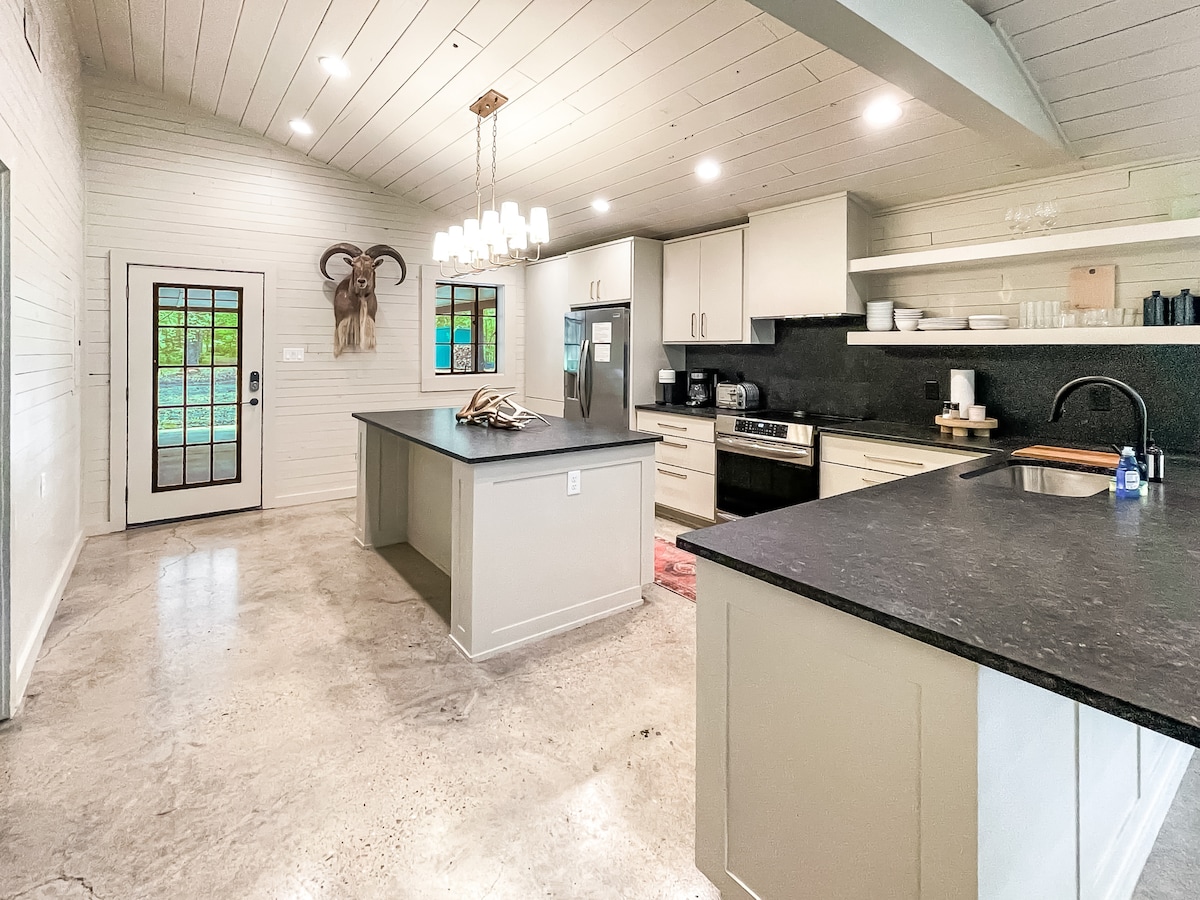 Relaxa't en aquesta moderna interpretació d'una caseta de pesca situada a The Little Red River, a pocs minuts de Searcy o Heber Springs. Tant si busques pesca de truites de classe mundial, una escapada romàntica o simplement per tornar a connectar amb la família i la natura, aquest és el lloc ideal per a tu! A part de tot el que pot oferir la natura, la casa inclou disc golf, galeries Pac Man i NBA Jam, internet d'alta velocitat i una llar de foc. També tindràs accés a un nou moll de pesca de 16x20 a la porta del darrere.