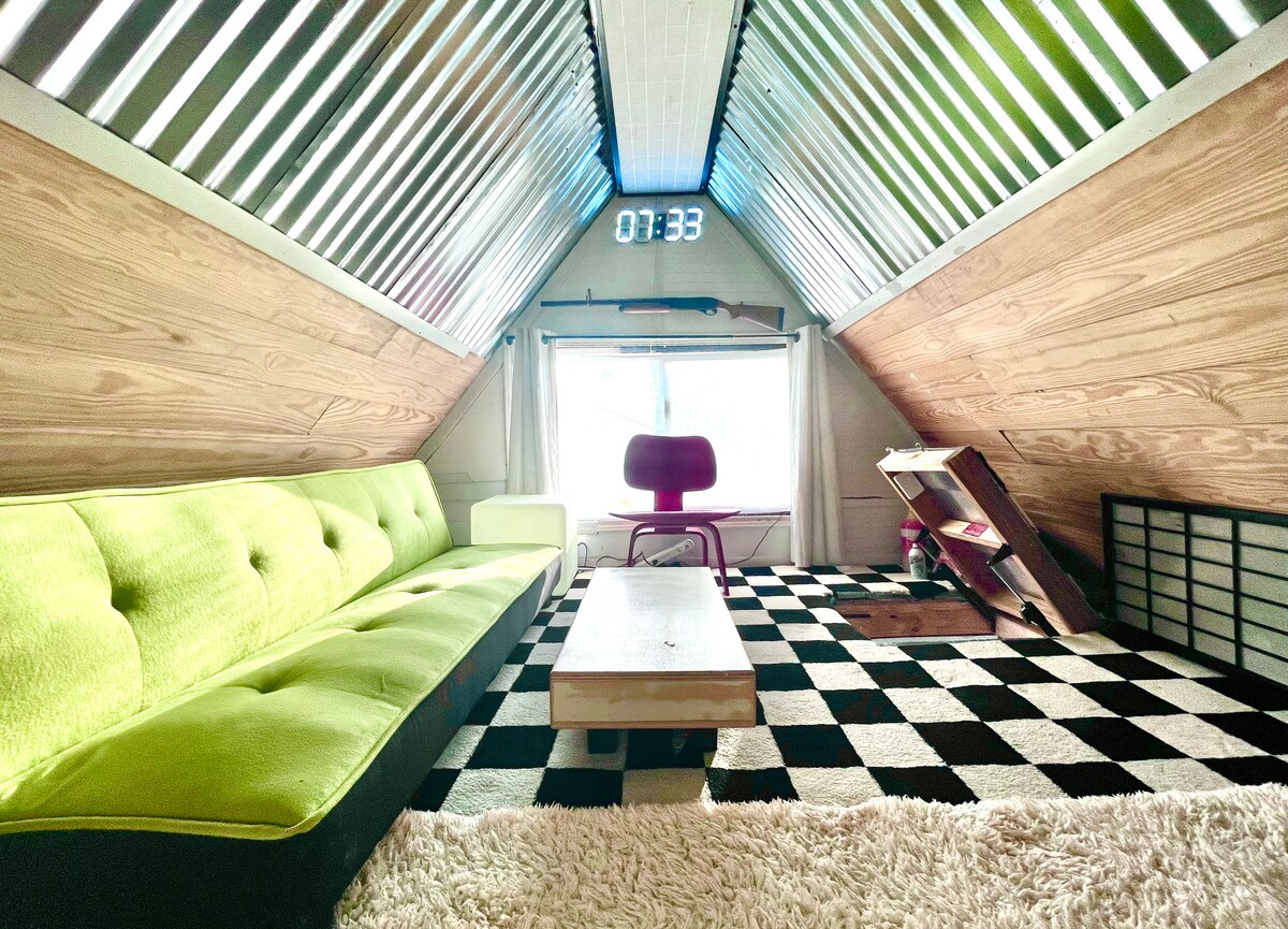 Experiència autèntica de Texas al graner d'un petit ranxo. Descobreix una de les novetats més grans del món amb 13,5 anys. Allotja't en un loft de luxe al graner construït amb shiplap blanquejat i fusta rústica. Hi ha grans finestres extragrans i vistes als estables i a la pastura. La banyera de cowboy extragrande és un canal d'aigua reconvertit. Aquest espai disposa d'una planta oberta que inclou 2 llits dobles dobles, una cuina petita i un centre d'entreteniment. Els sostres abovedats fan que l'estada sigui acollidora.